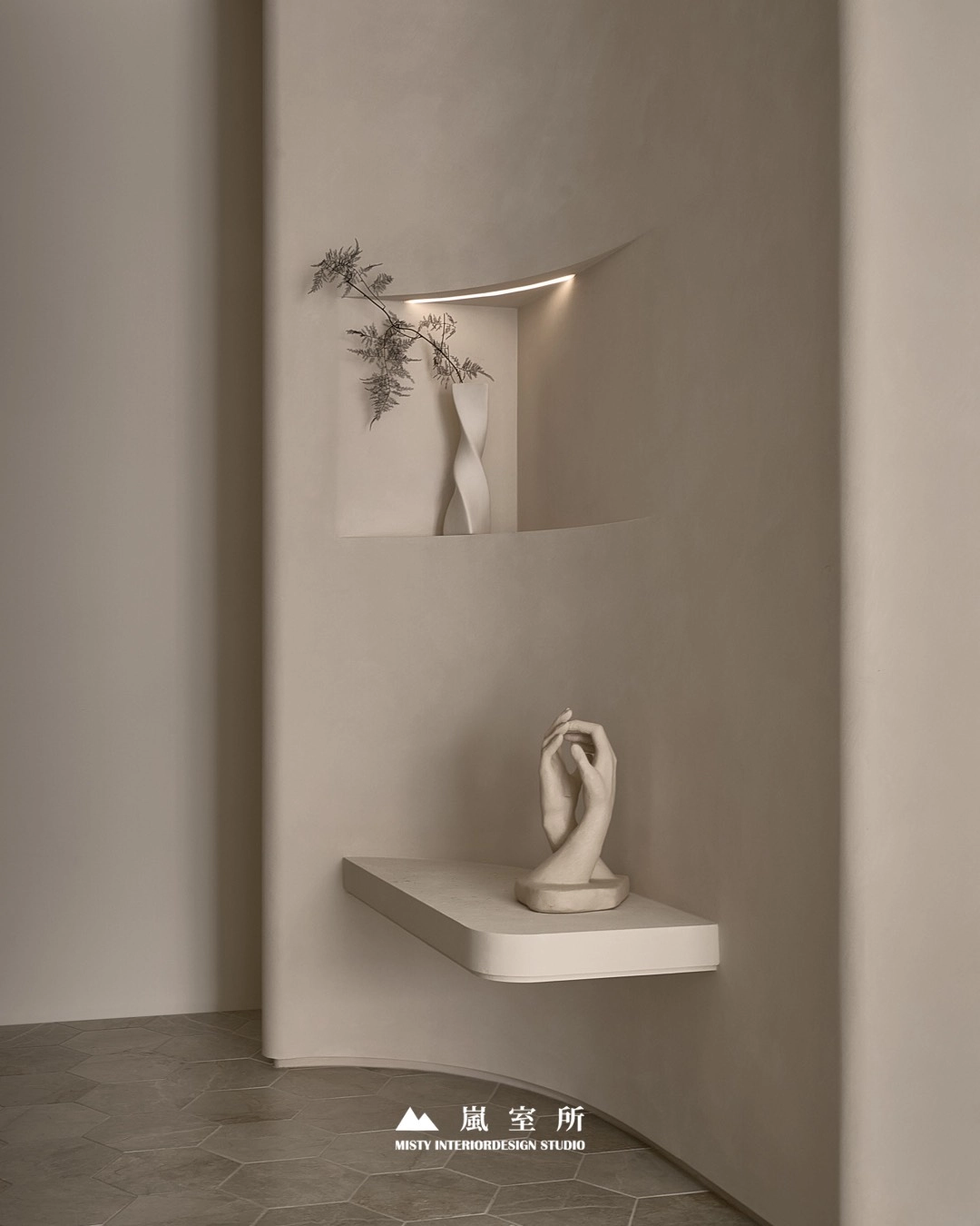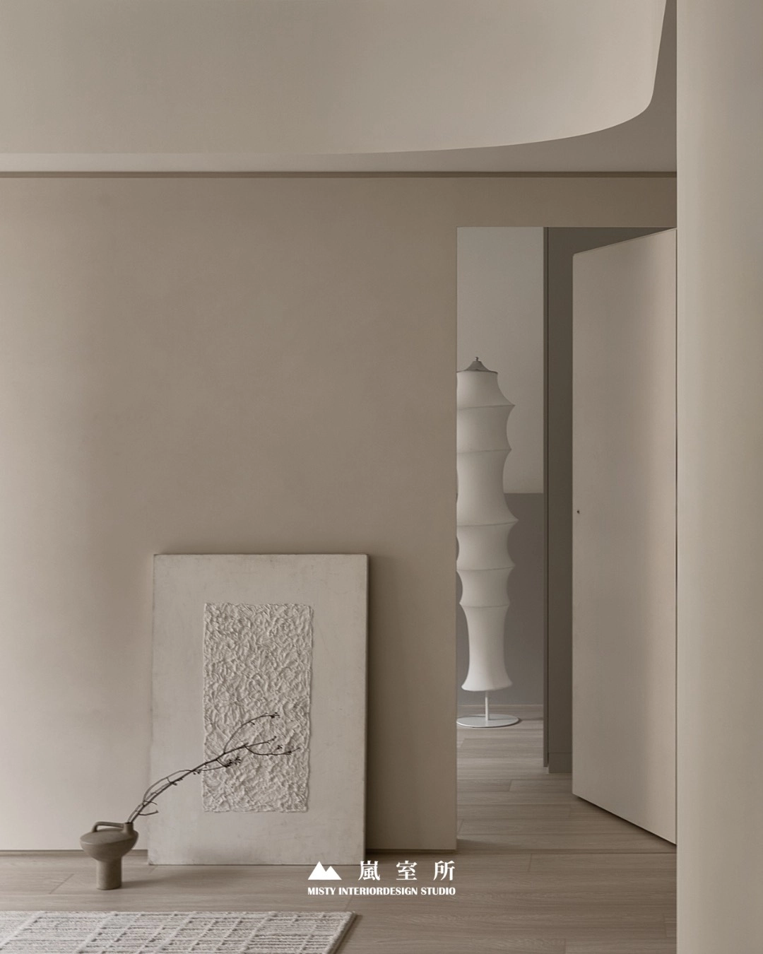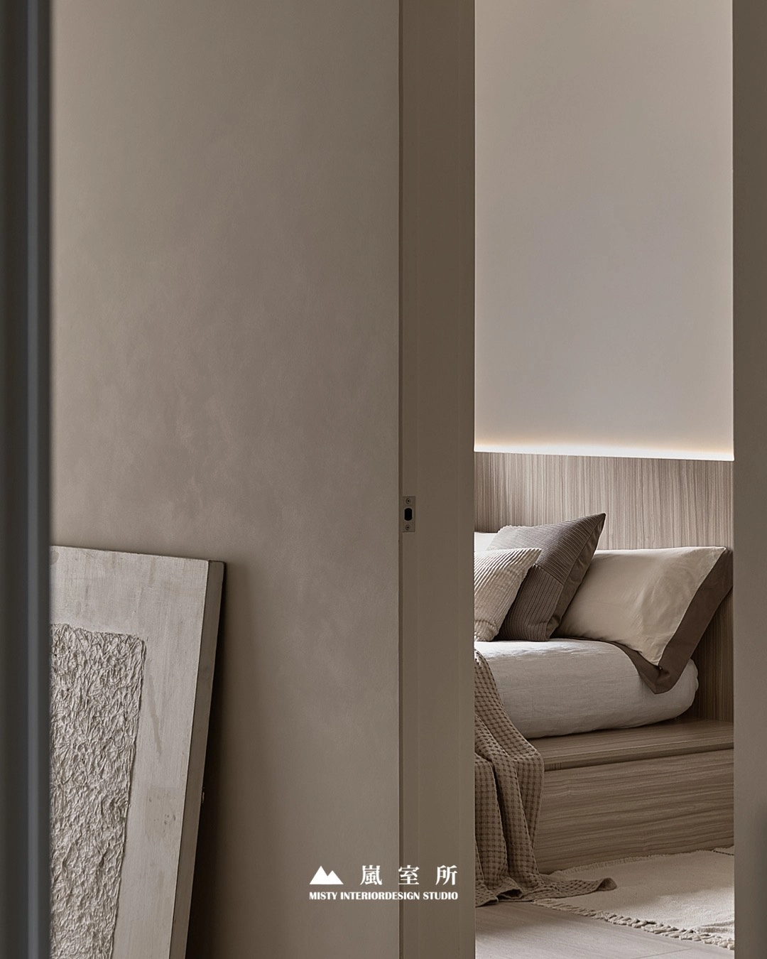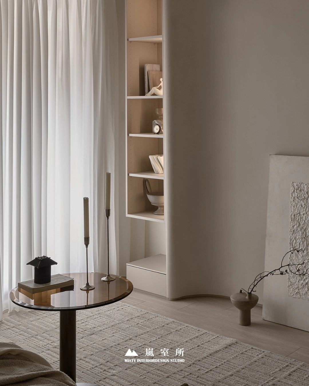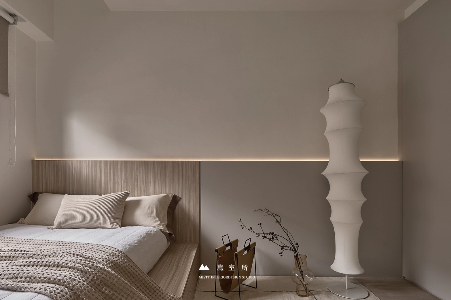 光影溫柔灑落,空間與生活在這裡對話。以米白色與木質調為主軸,構築出如呼吸般流動的氛圍。牆面微弧線條柔化了空間感,家具以低彩度材質呈現,既保留質樸氣息,也讓居住者能自在擁抱每一寸寧靜。