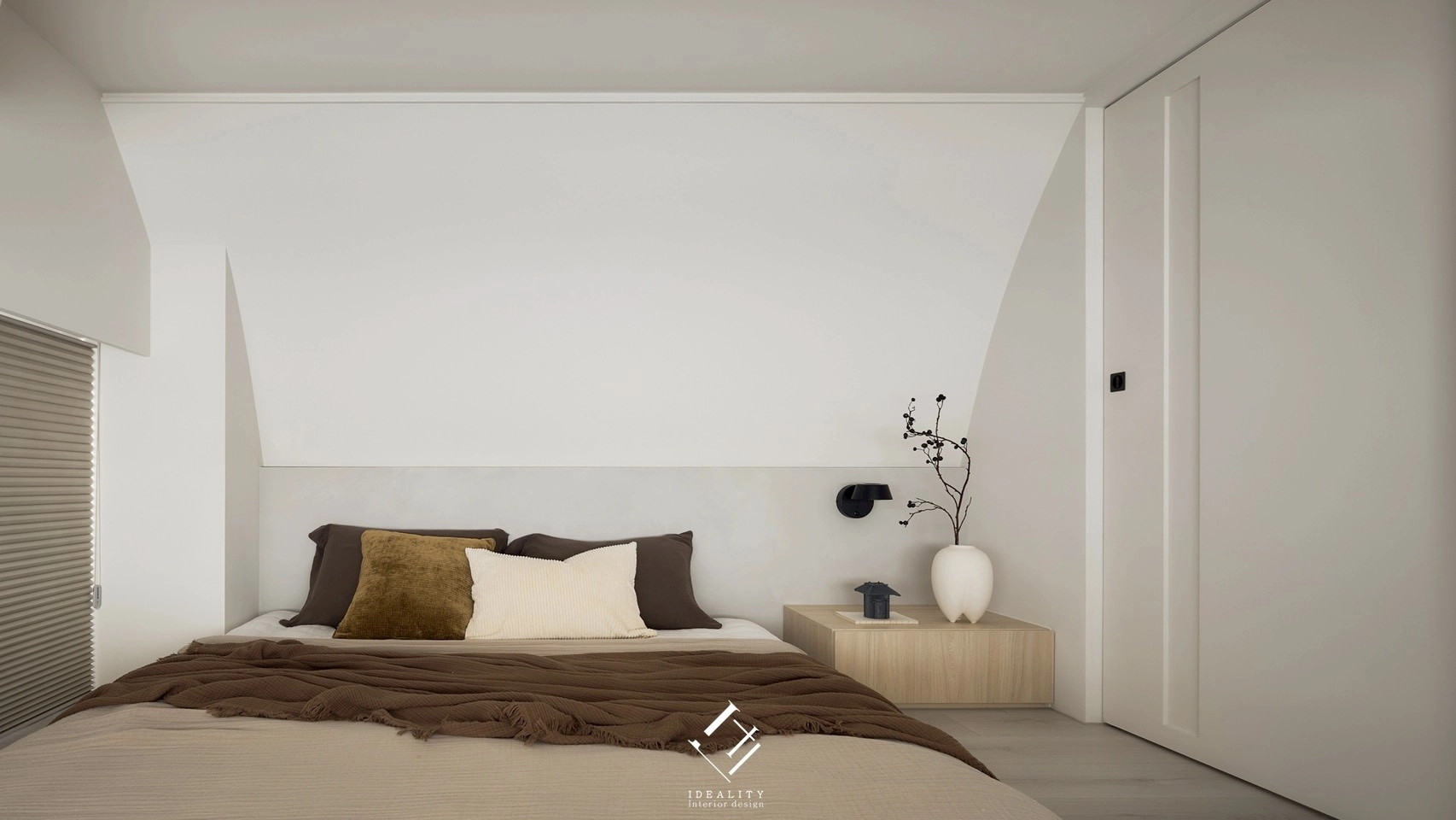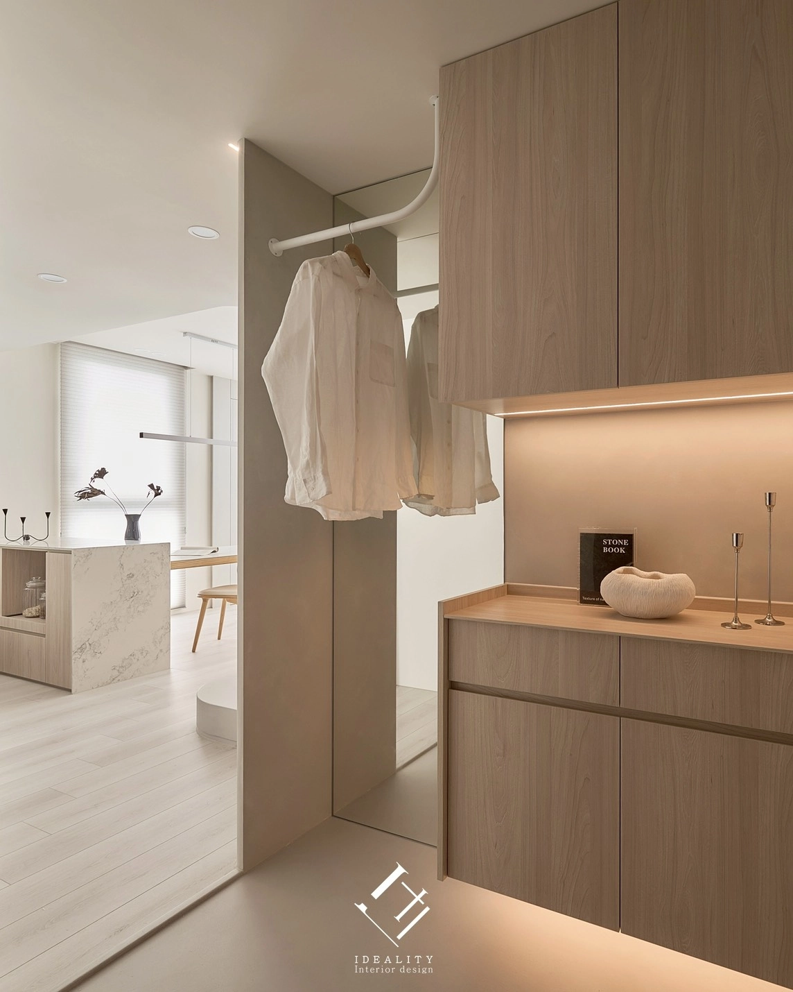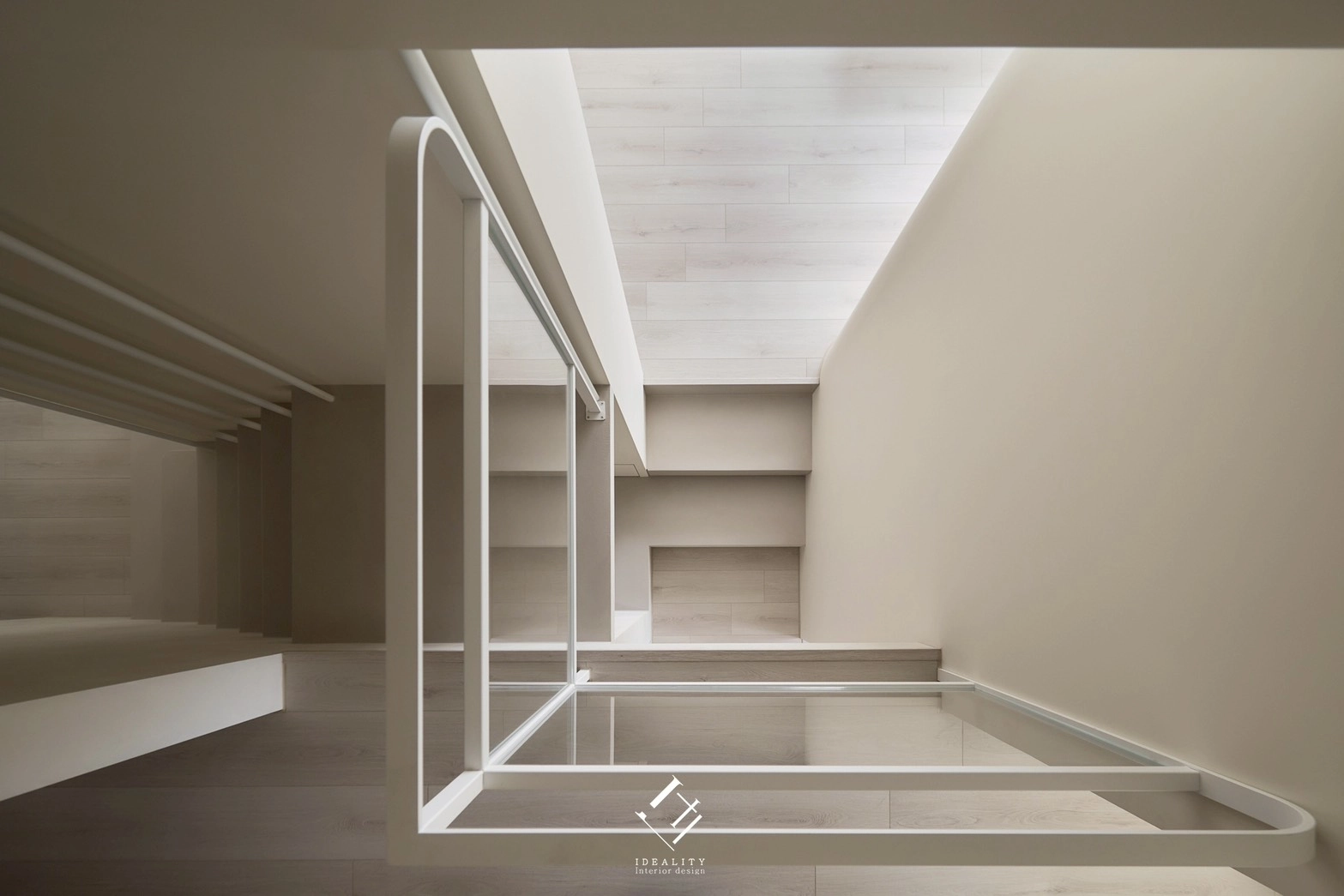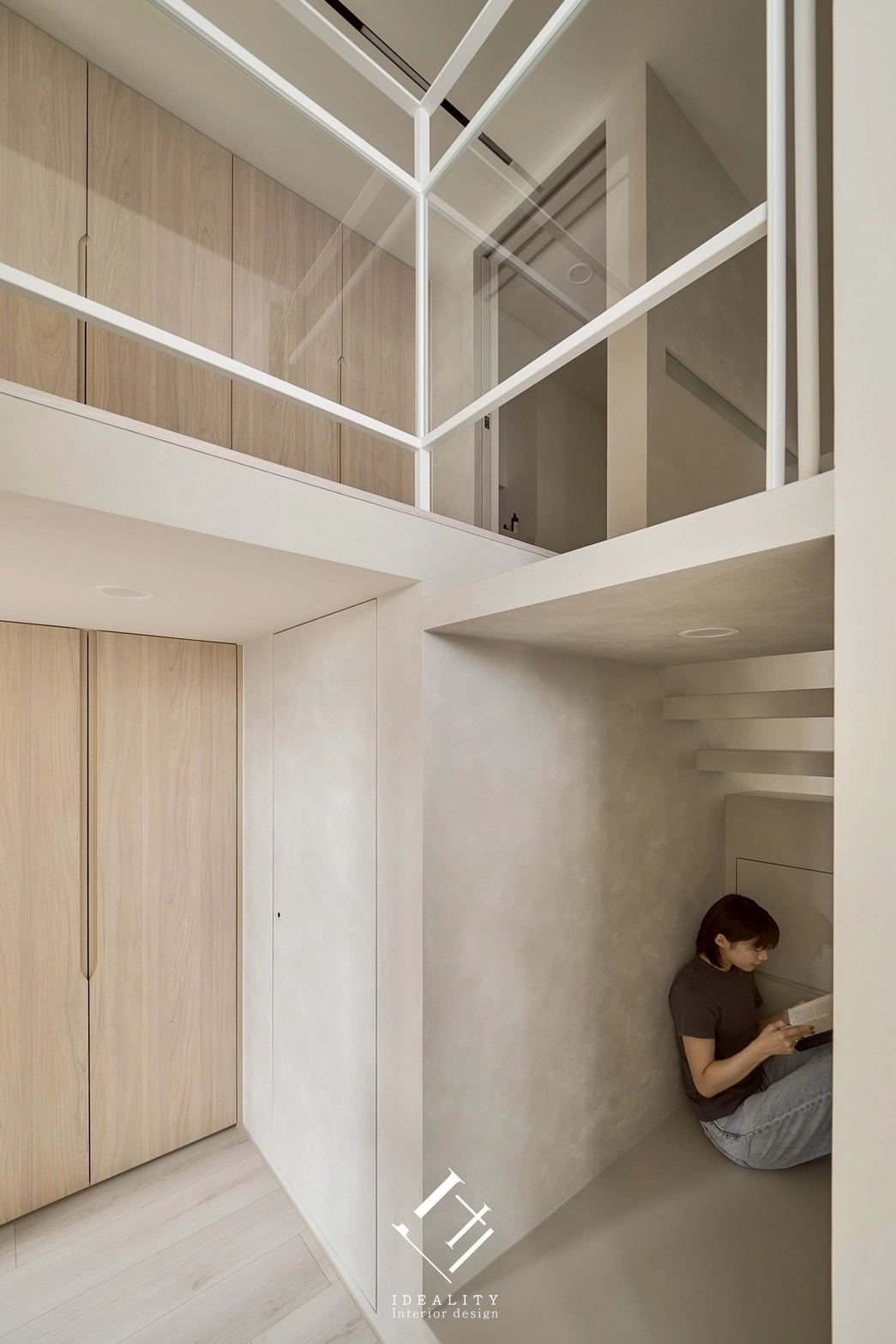 光與影,在這裡成為空間的靈魂。米白色牆面與溫潤木質相互交融,串聯生活的每一段節奏。以極簡線條構築整體格局,讓弧形牆面、階梯與櫥櫃自然過渡,空間因此流動、輕盈。